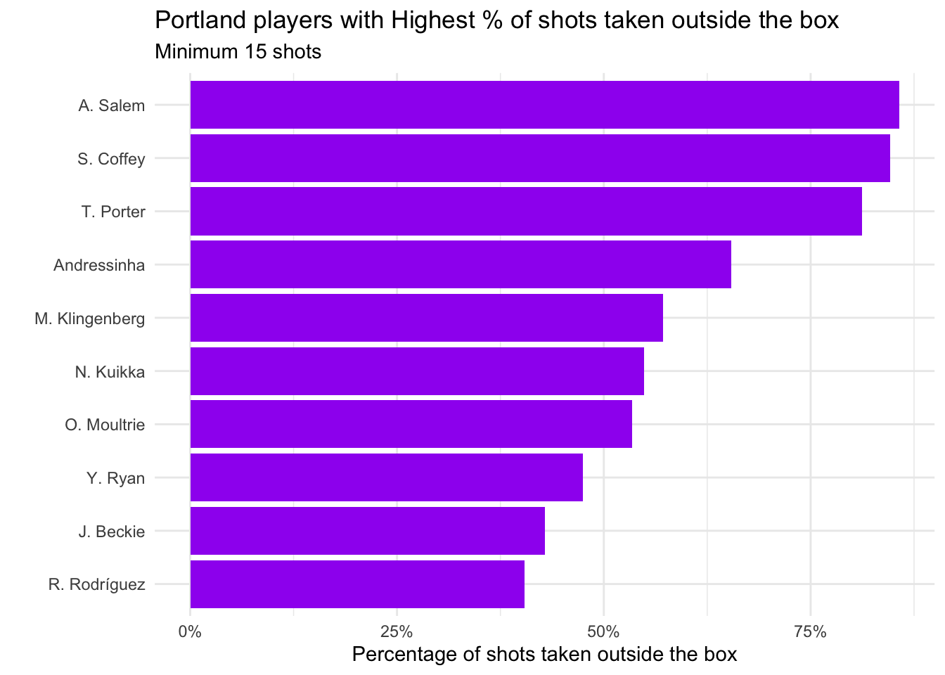 - Which Portland players took the highest percentage of shots outside the box?